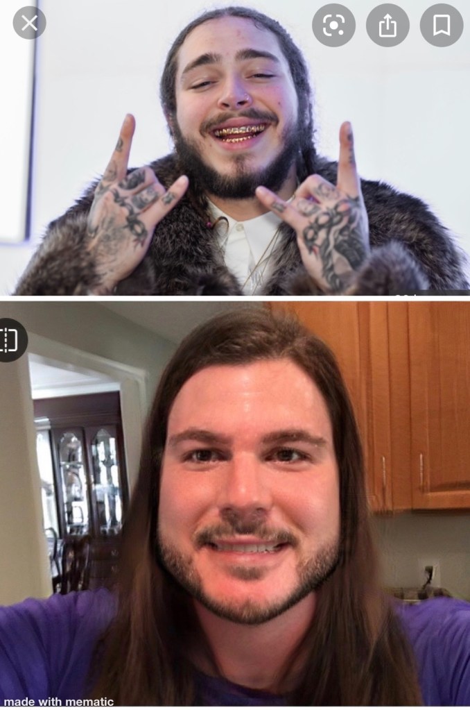 But where does she get these superstar looks? I’m glad you asked! This would be Lauren with the same filter. Keep in mind the center part Post Malone has here. It’s important later.