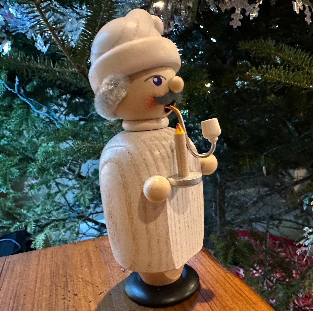 Lauren’s father died December 12 two years ago. Last year, I did an early twelve days of Christmas for her starting on the twelfth. I also bought her a German wood smoker carved as Ebenezer Scrooge (Lauren’s dad was a mortgage broker and lender, like Scrooge; please try to remember that Scrooge turns out good)—he blows pine incense. On college football’s rivalry weekend this year, I texted with my family about the Ohio State v. Michigan game and admonished all to break out their red and silver (Grandpa Laws got his PhD from OSU). My mother then asked if we thought my dad would be watching with us, and I said, “Of course.” Apparently, post-mortal beings get tired and fall asleep at their posts, as they did in life—Michigan won, and Dad didn’t do a damn thing about it. Not that he would be inclined—he wasn’t an athlete growing up.