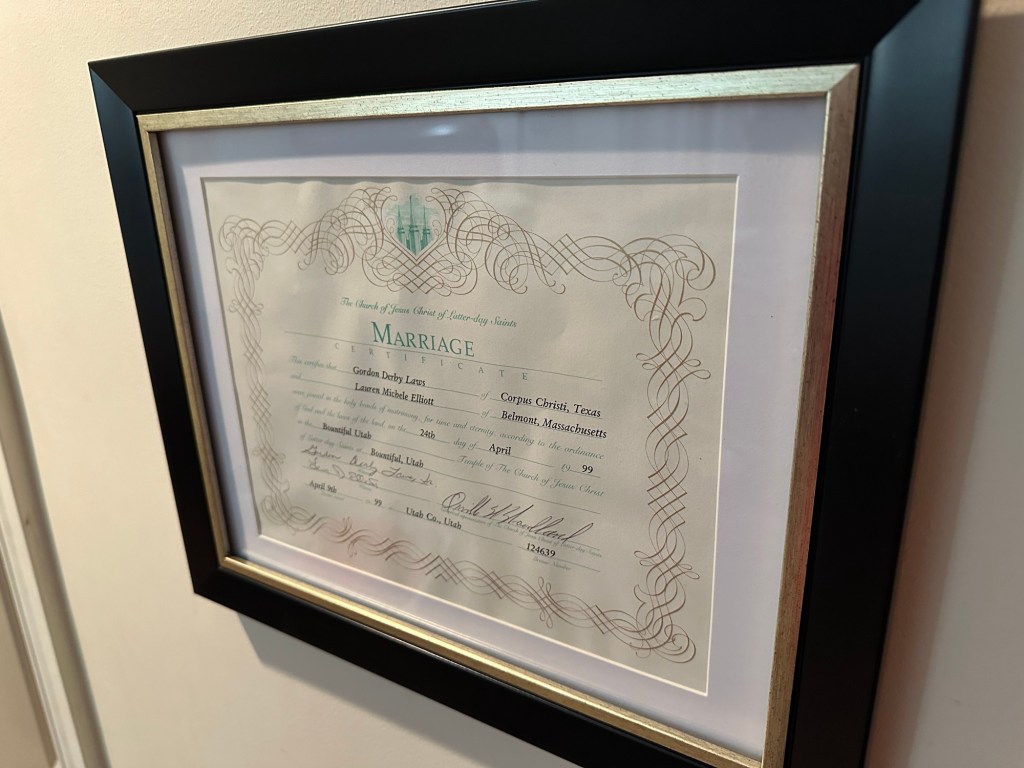 My marriage certificate has an oddity that almost no one but me would notice. I still remember my dad signing it and sort of pausing, half-smiling, half-grimacing before he did. My dad and my father-in-law were the witnesses of our marriage, so the certificate has both of their signatures on it. My dad signed it, “Gordon Derby Laws, Sr.” Do you see it now? The wedding certificate has my name as Gordon Derby Laws when I am legally and actually Gordon Derby Laws, Jr. and my father is legally and actually Gordon Derby Laws. I didn’t think of that at all when applying for the marriage license, and it’s clear that no one thought of it until that moment when the sealer asked Dad to sign it.