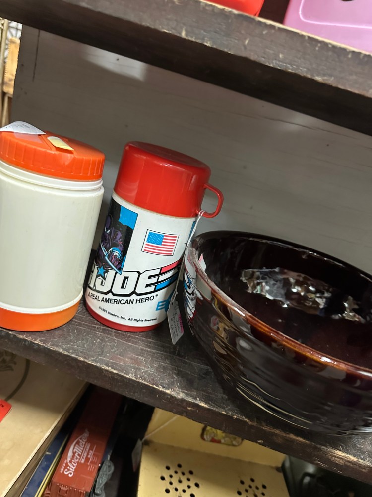 We went to Pennsylvania this weekend to see Grant, Katy, and Lindsay, and upon arrival, the girls headed off to look at dresses for an upcoming formal. Grant was still working, so Graham and I walked to a local antiques shop to browse. Antiquing along the Susquehanna River is apparently a thing. So Graham and I popped in and began to browse. Almost immediately, we found this fine thermos that would have been highly coveted among my seven-year-old friends.