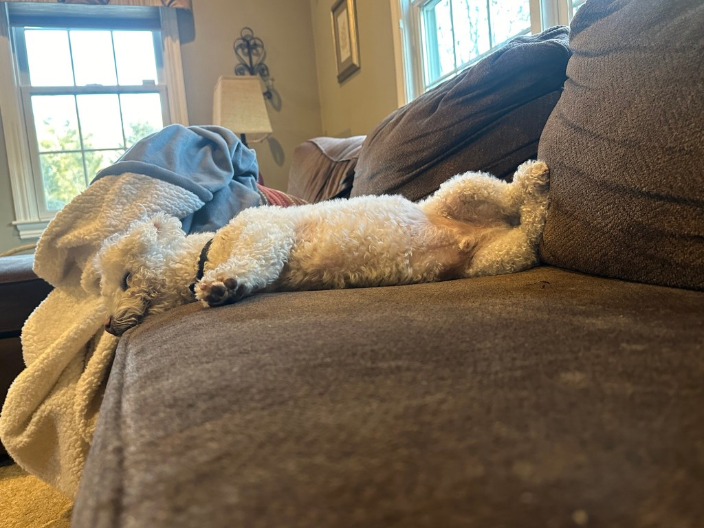 Dobby clearly wasn’t troubled by bad dreams even though his meal barely met his standards. Sleep better, Lu. Life will get better. Or it won’t. Never can tell.