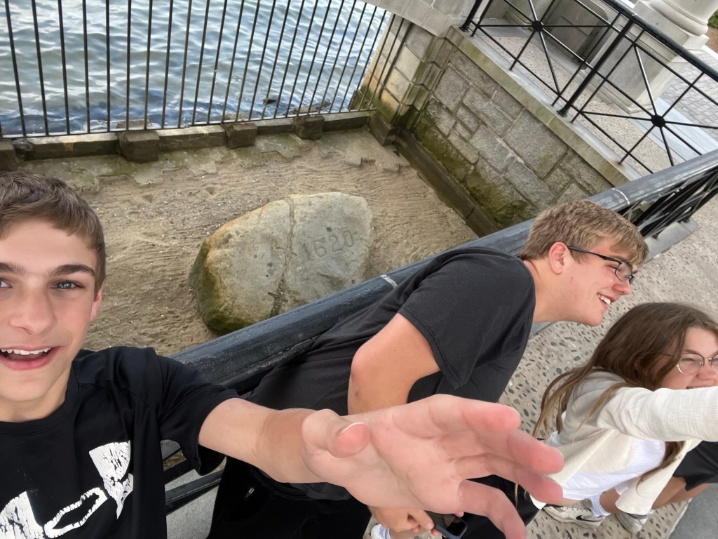 We headed to Texas Roadhouse to celebrate Lucia’s birthday. On the way, we stopped briefly at Plymouth Rock. I instructed the kids to “get together and take a picture with the rock.”