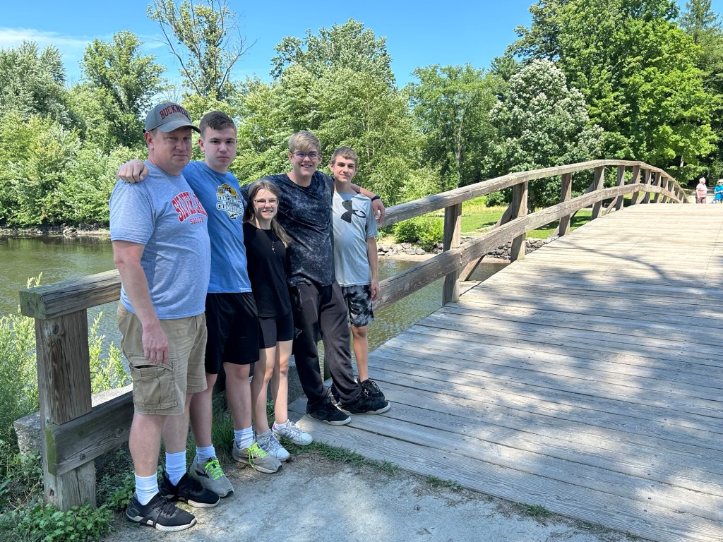 We stopped at the Old North Bridge, and I explained the battle sequence to the kids. We got this fine picture.