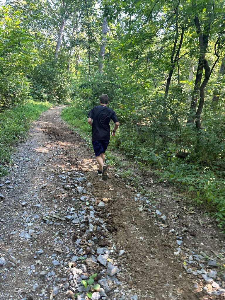 Meanwhile, Graham was on a six-mile loop, and I got this text from him: I just went up Big Round Top. It was the worst experience of my life. Look, Graham has been through a lot in his short life, so this is really saying something. In fairness, when you run his route, you descend for at least a quarter of a mile, and then at the base of Big Round Top, you stare up at a hill that is angled for at least a quarter mile at a 45-degree angle.