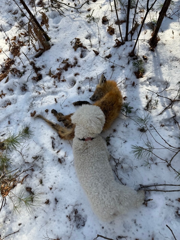 What then followed was a flurry of activity. Our friend Garrett checked out a picture and said the fox probably had mange and the dogs could use a bath. A call to the vet netted a $150 appointment for a rabies booster. Brayden called a taxidermist about preserving it as a trophy of “my boy’s first hunting kill.” Ultimately, he decided the mange possibility ruled that out, and we left the fox in the wilderness for the elements.